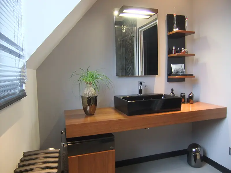 Transformation d’une chambre et d’une salle d’eau de style rustique en style contemporain/loft et design pour une adolescente.